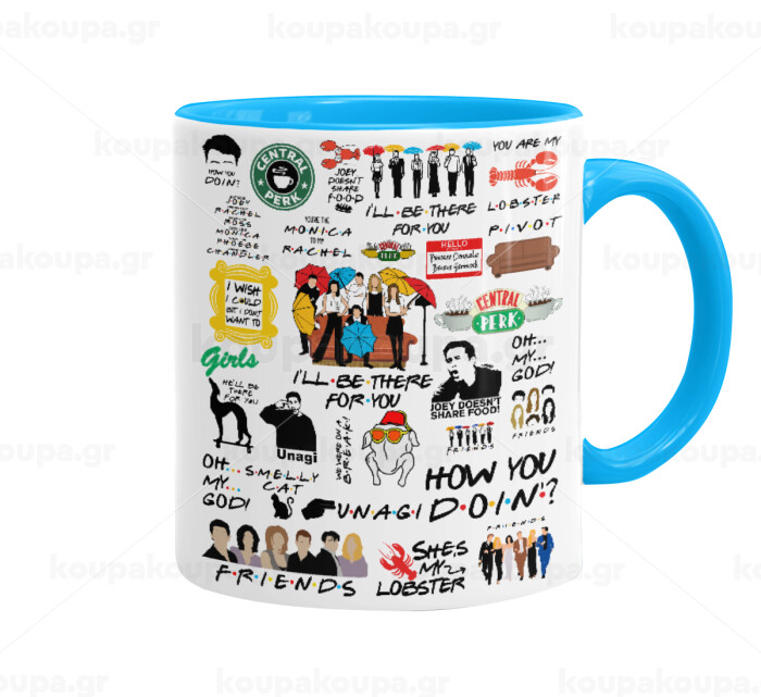 Friends, Κούπα χρωματιστή γαλάζια, κεραμική, 330ml