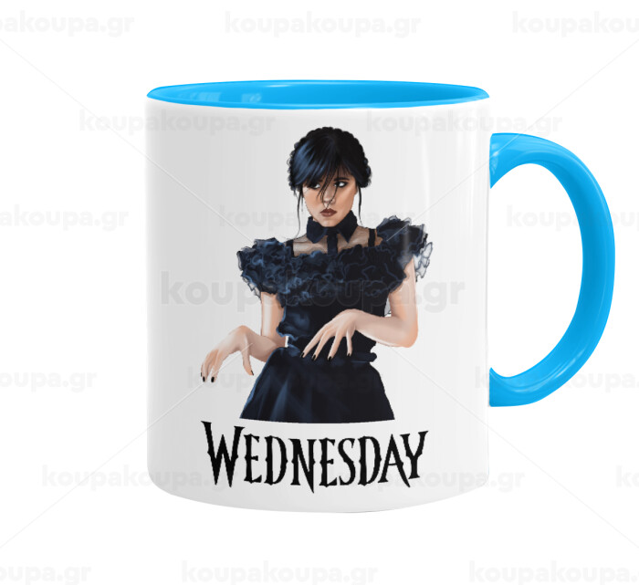 Wednesday Adams, dance with hands, Κούπα χρωματιστή γαλάζια, κεραμική, 330ml
