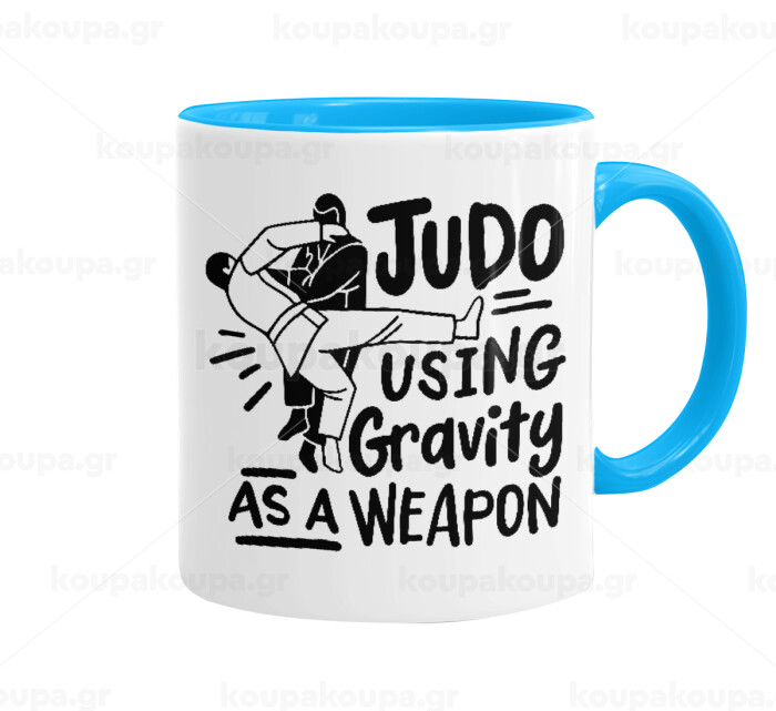 Judo using gravity as a weapon, Κούπα χρωματιστή γαλάζια, κεραμική, 330ml