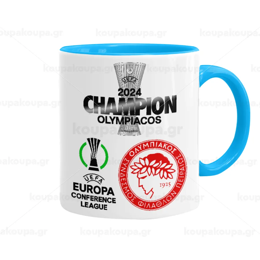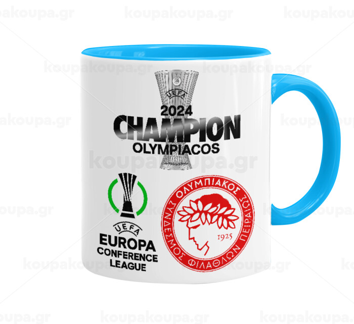 Olympiacos UEFA Europa Conference League Champion 2024, Κούπα χρωματιστή γαλάζια, κεραμική, 330ml