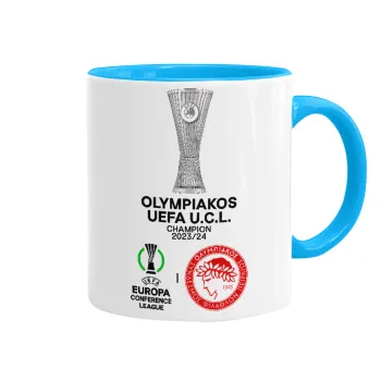 Ολυμπιακός νικητής UEFA Europa Conference League Champion 2023/24, Κούπα χρωματιστή γαλάζια, κεραμική, 330ml