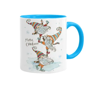 Christmas nordic gnomes, Κούπα χρωματιστή γαλάζια, κεραμική, 330ml