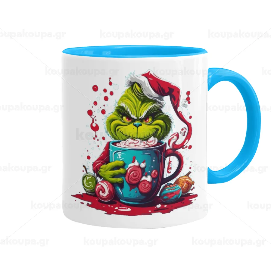 Giggling Grinchy Galore, Κούπα χρωματιστή γαλάζια, κεραμική, 330ml