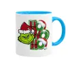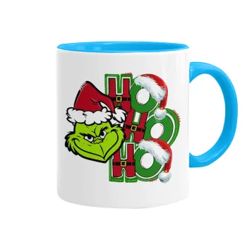 Grinch ho ho ho, Κούπα χρωματιστή γαλάζια, κεραμική, 330ml