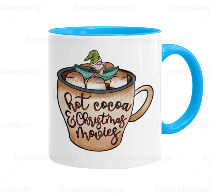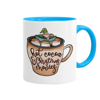 Hot Cocoa And Christmas Movies, Κούπα χρωματιστή γαλάζια, κεραμική, 330ml