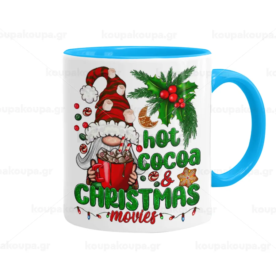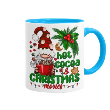 Hot cocoa and Christmas movies, Κούπα χρωματιστή γαλάζια, κεραμική, 330ml