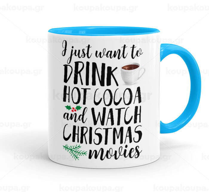 I just want to drink hot cocoa and watch christmas movies, Κούπα χρωματιστή γαλάζια, κεραμική, 330ml