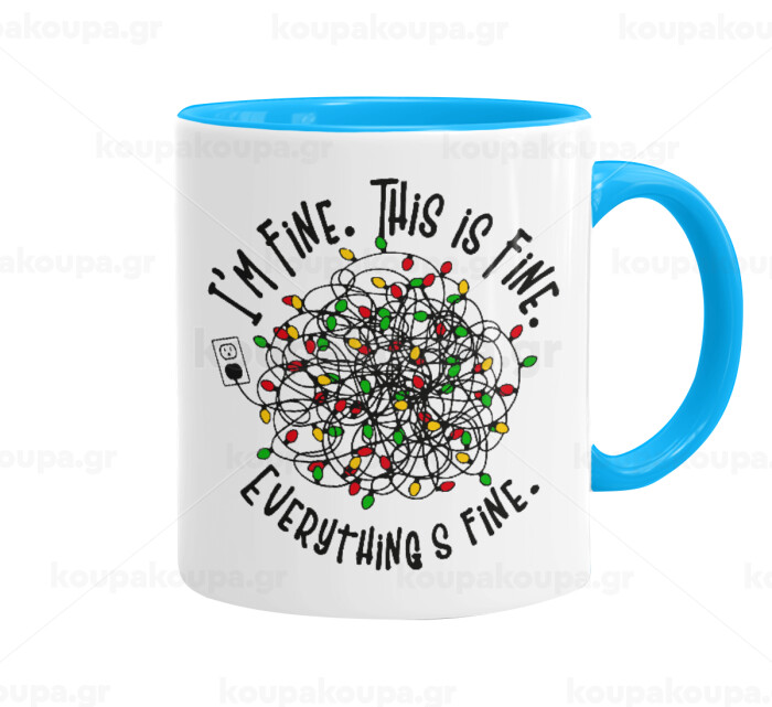 It's Fine I'm Fine Everything Is Fine, Κούπα χρωματιστή γαλάζια, κεραμική, 330ml
