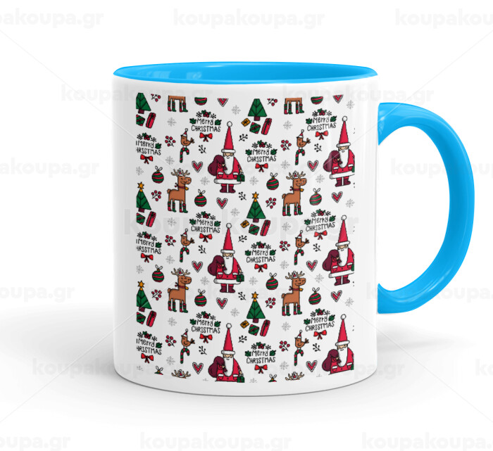 Santas, Deers & Trees, Κούπα χρωματιστή γαλάζια, κεραμική, 330ml