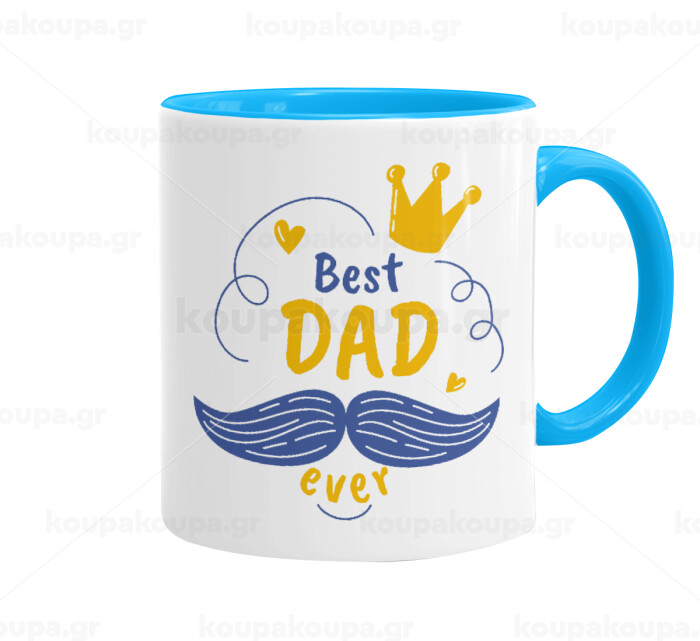 Best dad ever ο Βασιλιάς, Κούπα χρωματιστή γαλάζια, κεραμική, 330ml