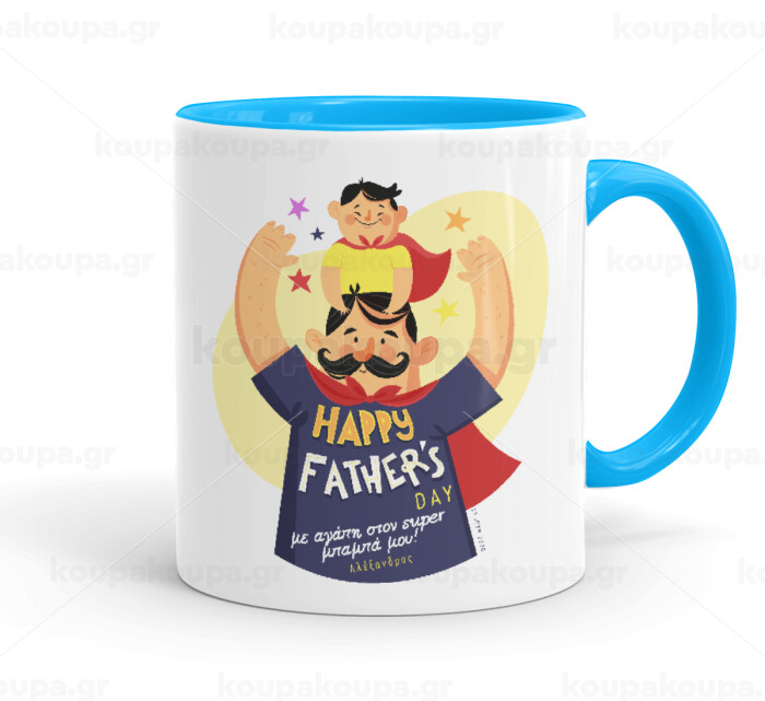 Happy Fathers Day με όνομα, Κούπα χρωματιστή γαλάζια, κεραμική, 330ml