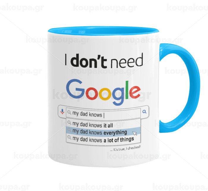 I don't need Google my dad..., Κούπα χρωματιστή γαλάζια, κεραμική, 330ml