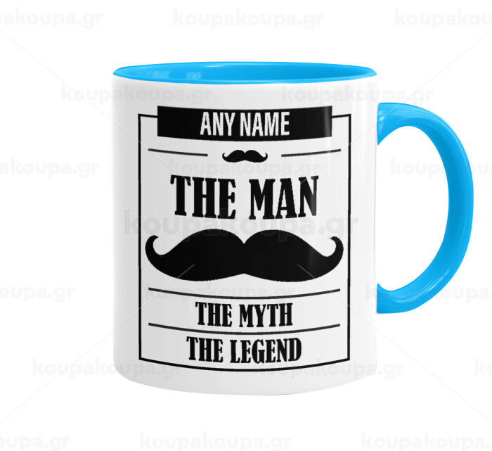 The man, the myth, Κούπα χρωματιστή γαλάζια, κεραμική, 330ml