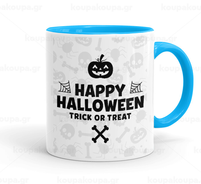 Happy Halloween pumpkin, Κούπα χρωματιστή γαλάζια, κεραμική, 330ml