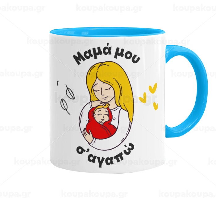 Μανούλα σ'αγαπώ αγκαλιά!, Κούπα χρωματιστή γαλάζια, κεραμική, 330ml