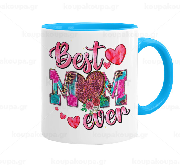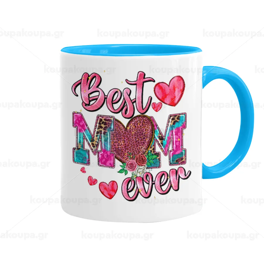 Best mom ever Mother's Day pink, Κούπα χρωματιστή γαλάζια, κεραμική, 330ml