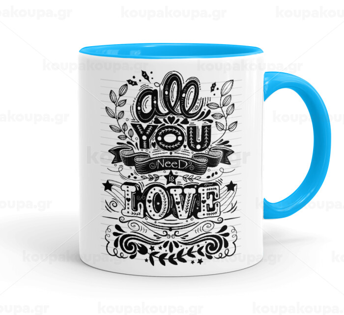 All you need is love, Κούπα χρωματιστή γαλάζια, κεραμική, 330ml