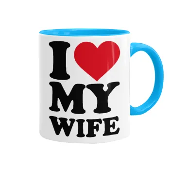 I Love my Wife, Κούπα χρωματιστή γαλάζια, κεραμική, 330ml