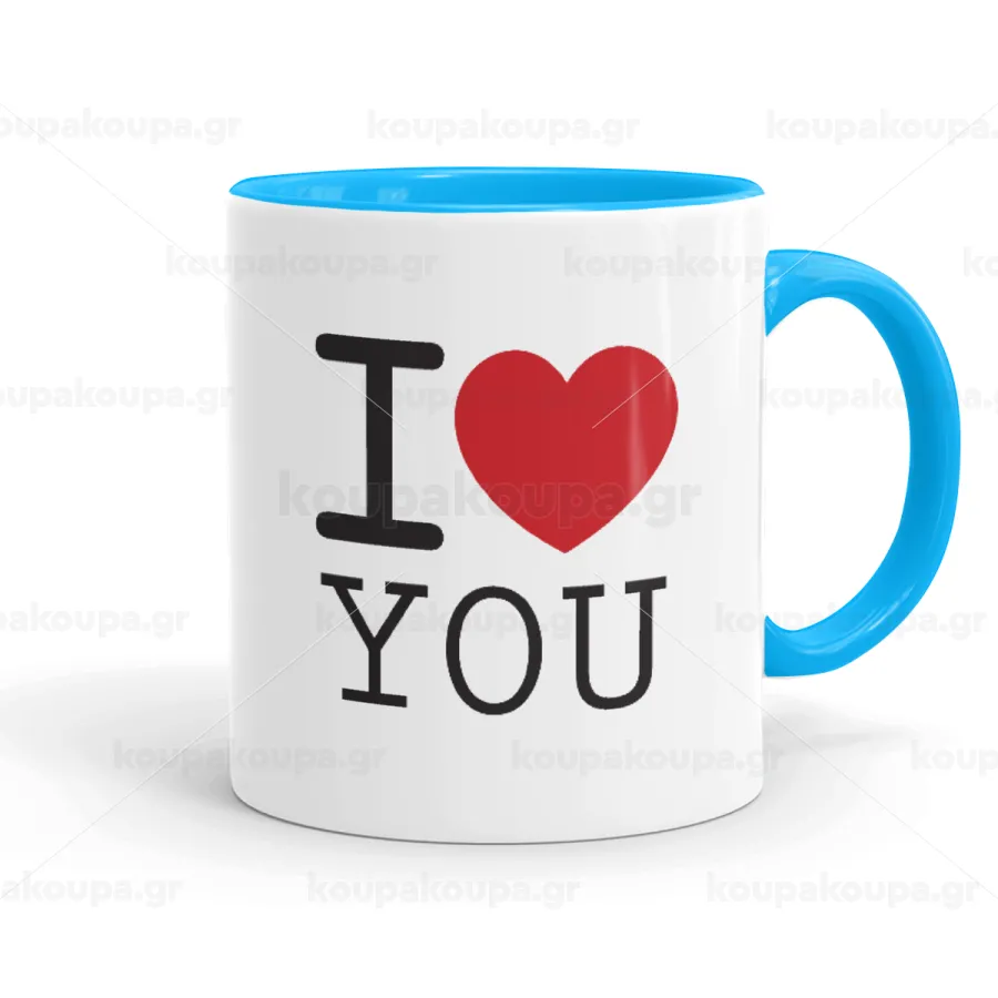 I Love you classic, Κούπα χρωματιστή γαλάζια, κεραμική, 330ml