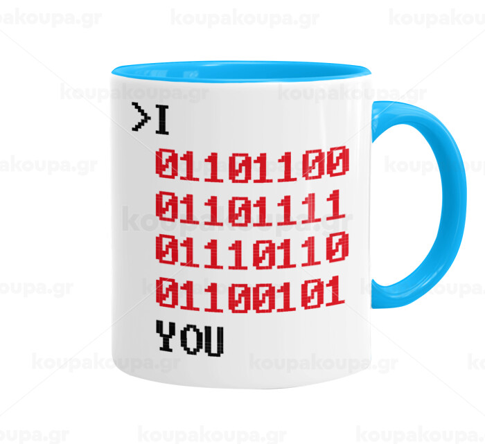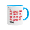 I .... YOU, binary secret MSG, Κούπα χρωματιστή γαλάζια, κεραμική, 330ml