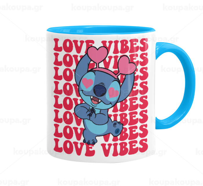 Lilo & Stitch Love vibes, Κούπα χρωματιστή γαλάζια, κεραμική, 330ml