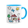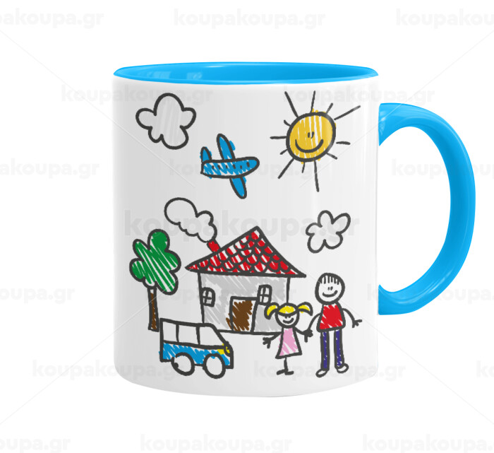 Παιδική ζωγραφιά, Κούπα χρωματιστή γαλάζια, κεραμική, 330ml