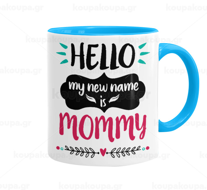 Hello, my new name is Mommy, Κούπα χρωματιστή γαλάζια, κεραμική, 330ml