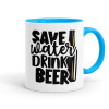 Save Water, Drink BEER, Κούπα χρωματιστή γαλάζια, κεραμική, 330ml