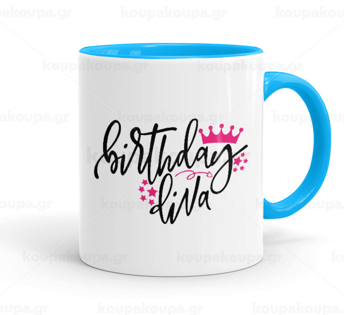 Birthday Diva queen, Κούπα χρωματιστή γαλάζια, κεραμική, 330ml