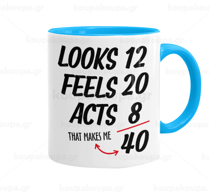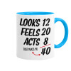 Looks, feels, acts LIKE your AGE, Κούπα χρωματιστή γαλάζια, κεραμική, 330ml