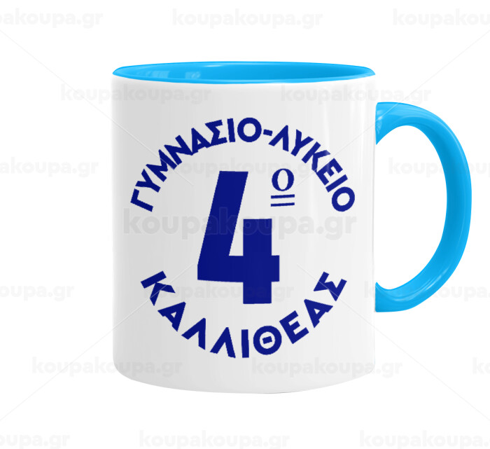Έμβλημα Σχολικό μπλε κλασικό, Κούπα χρωματιστή γαλάζια, κεραμική, 330ml