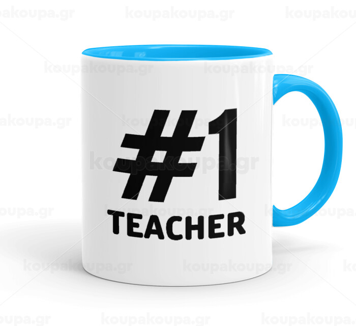 #1 teacher, Κούπα χρωματιστή γαλάζια, κεραμική, 330ml