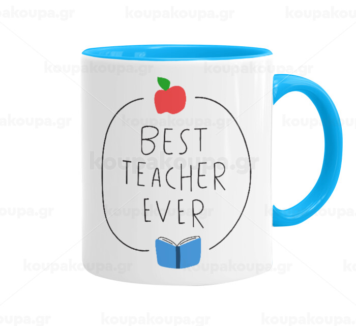 Best teacher ever, Κούπα χρωματιστή γαλάζια, κεραμική, 330ml