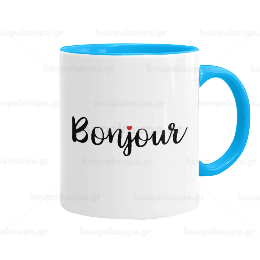 Bonjour, Κούπα χρωματιστή γαλάζια, κεραμική, 330ml