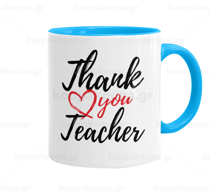 Thank you teacher, Κούπα χρωματιστή γαλάζια, κεραμική, 330ml