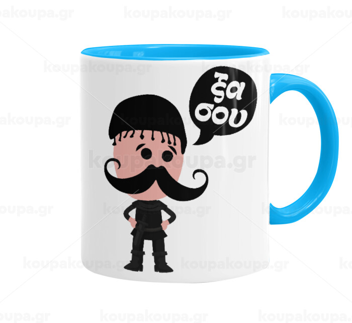 Κρητικός "Ξα σου", Κούπα χρωματιστή γαλάζια, κεραμική, 330ml