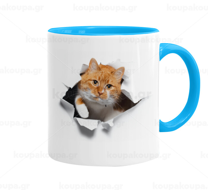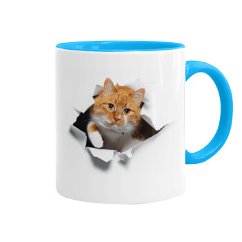Cat cracked, Κούπα χρωματιστή γαλάζια, κεραμική, 330ml