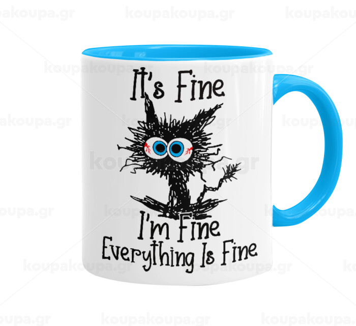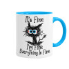Cat, It's Fine I'm Fine Everything Is Fine, Κούπα χρωματιστή γαλάζια, κεραμική, 330ml
