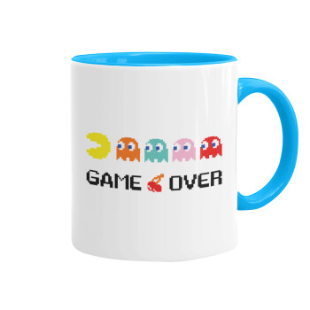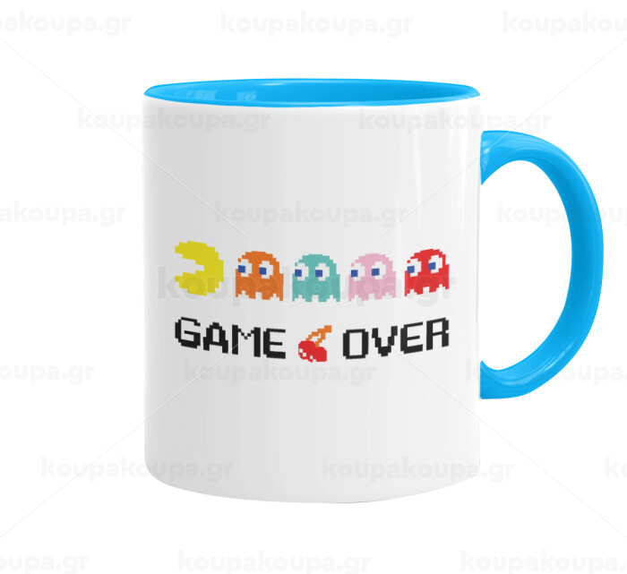 GAME OVER pac-man, Κούπα χρωματιστή γαλάζια, κεραμική, 330ml