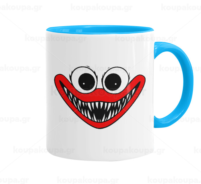 Huggy wuggy, Κούπα χρωματιστή γαλάζια, κεραμική, 330ml