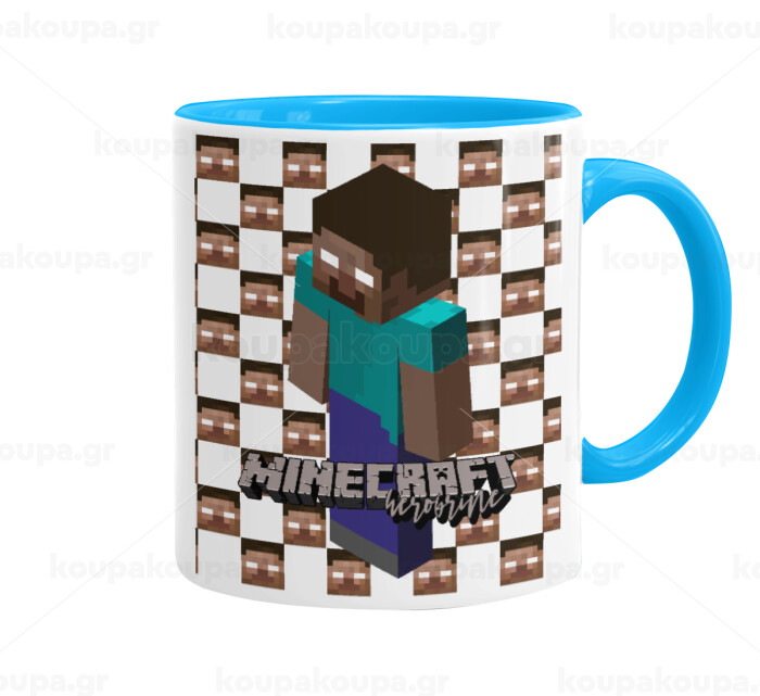 Minecraft herobrine, Κούπα χρωματιστή γαλάζια, κεραμική, 330ml