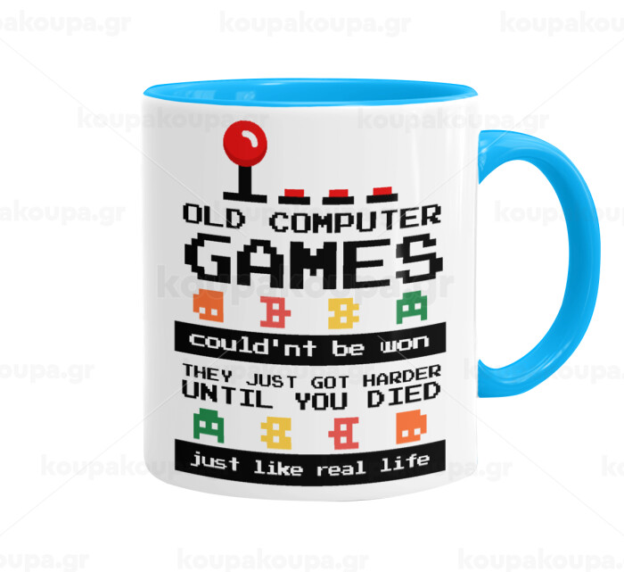 OLD computer games couldn't be won just like real life!, Κούπα χρωματιστή γαλάζια, κεραμική, 330ml