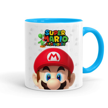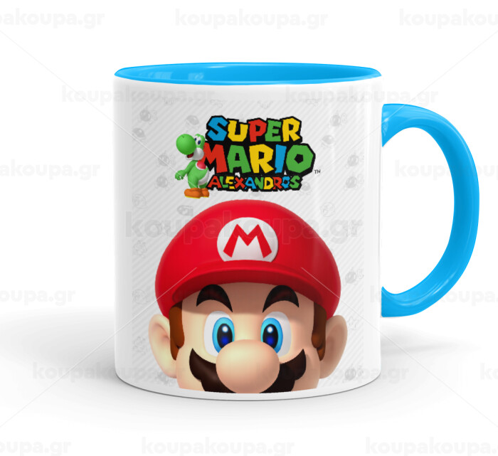 Super mario head, Κούπα χρωματιστή γαλάζια, κεραμική, 330ml