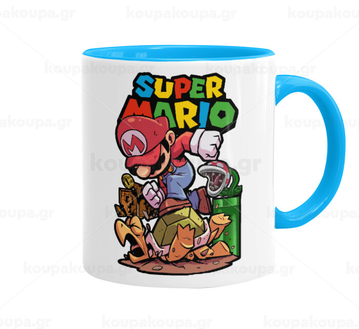 Super mario Jump, Κούπα χρωματιστή γαλάζια, κεραμική, 330ml