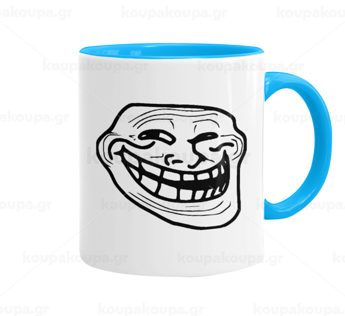 Troll face, Κούπα χρωματιστή γαλάζια, κεραμική, 330ml