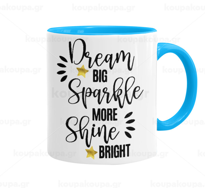Dream big, Sparkle more, Shine bright, Κούπα χρωματιστή γαλάζια, κεραμική, 330ml