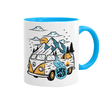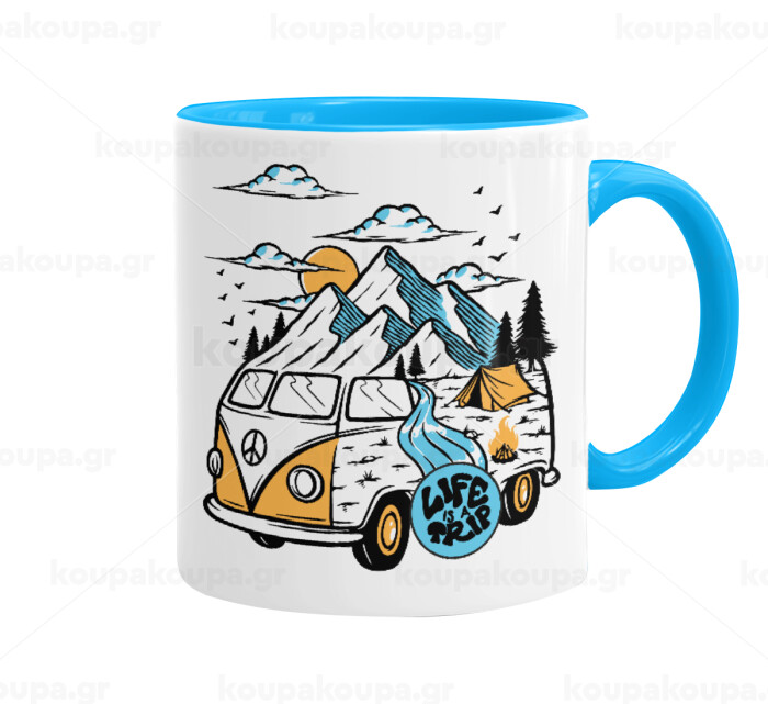 Life is a trip, Κούπα χρωματιστή γαλάζια, κεραμική, 330ml