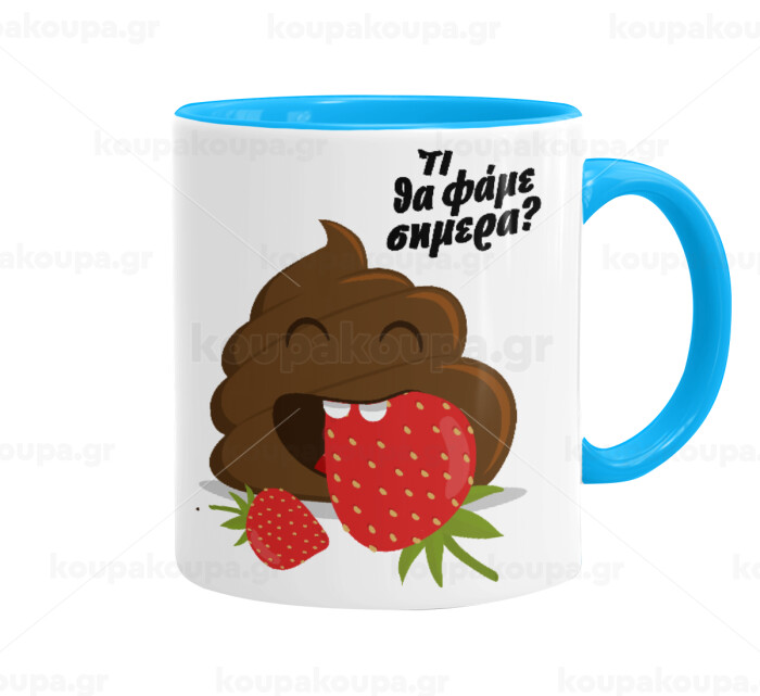 Τι θα φάμε σημερα???, Κούπα χρωματιστή γαλάζια, κεραμική, 330ml