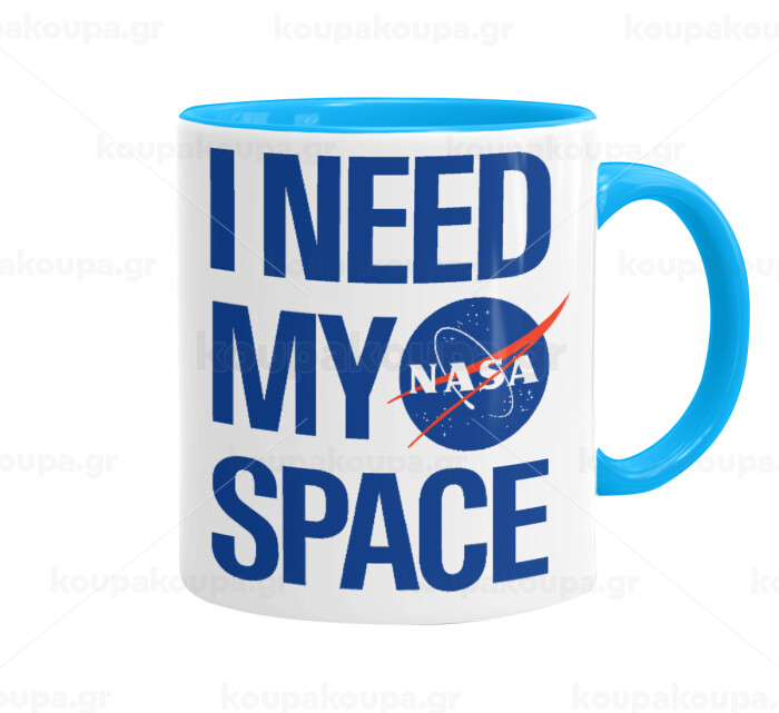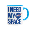 I need my space, Κούπα χρωματιστή γαλάζια, κεραμική, 330ml