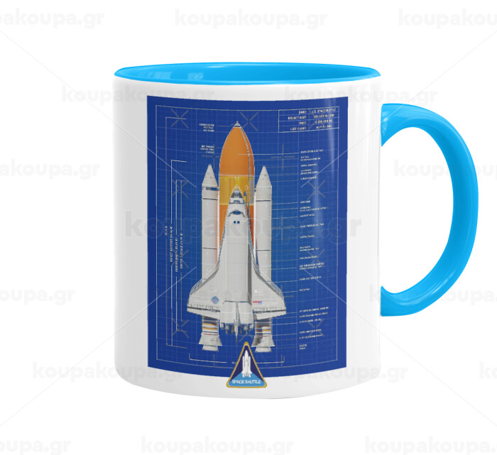 Nasa Space Shuttle, Κούπα χρωματιστή γαλάζια, κεραμική, 330ml
